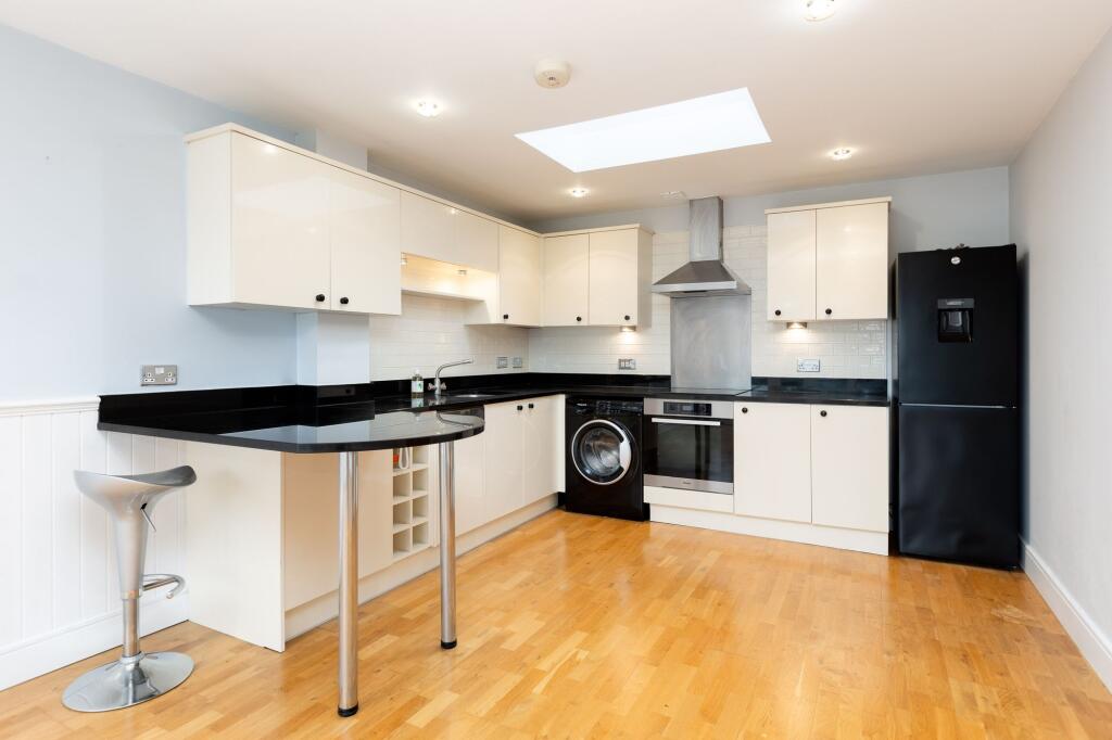 This property is a two bedroom, two bathroom penthouse apartment located in Starlings Bridge, Hitchin. The apartment is modern and well presented, with a contemporary kitchen and bathrooms. It benefits from a private balcony overlooking a green space. The location is convenient, with good access to local amenities and transport links. The list price is slightly above the average price per square foot for the area, however, the modern condition and desirable location justify this.