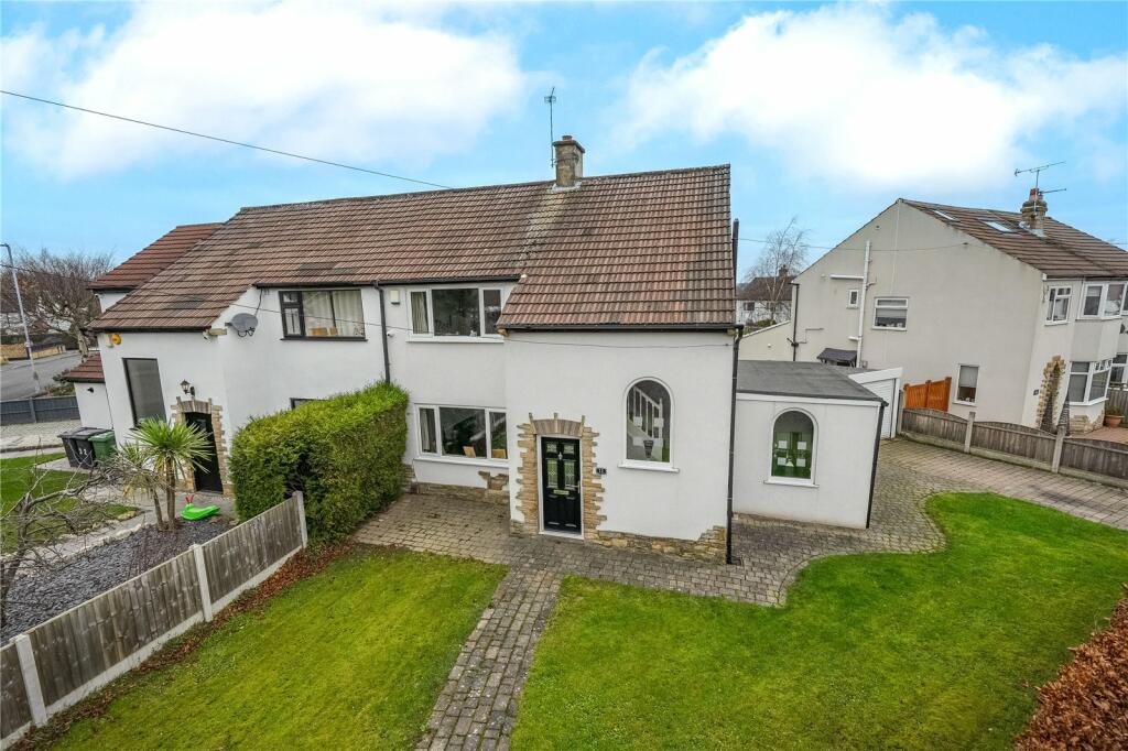This three-bedroom semi-detached house in Leeds, West Yorkshire, is presented as a family home situated in the Adel area. The property benefits from a modern aesthetic, with seemingly updated kitchens and bathrooms. The images suggest a good level of maintenance, however some areas seem more modernised than others. The property sits on a plot which includes a front and rear garden and a driveway. The location in Adel is a plus, offering proximity to well-regarded schools like Ireland Wood Primary School and Ralph Thoresby School. While several train stations are listed, information regarding local amenities and other transport is incomplete which prevents a more definitive analysis. The absence of precise plot size and nearby property square footage data hinders a precise assessment of value relative to price per square foot. Overall, the property appears to be a well-presented home in a good area, although further investigation into specifics would be necessary for a complete evaluation.
