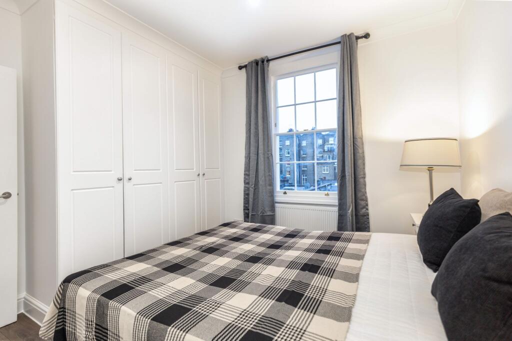 An elegant 1-bed apartment, bathed in natural light. Professionally managed, with built-in storage, open plan kitchen/living space with wood flooring.