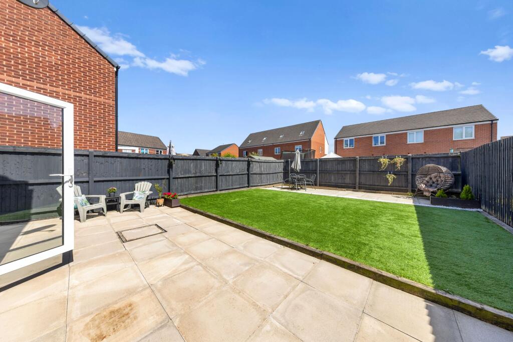 The images reveal a modern property that appears to be in excellent condition. The interior is well-maintained and finished to a high standard. The kitchen and bathrooms are modern and well-equipped. The property also benefits from a well-maintained garden with artificial turf, adding to its appeal.