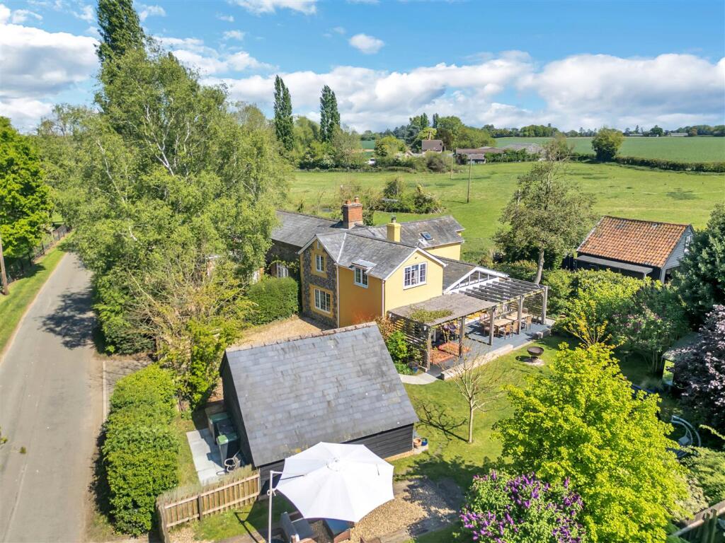 The property benefits from a large garden, outbuildings, and ample parking. The location is desirable, being in a peaceful village setting yet within commuting distance of Bury St Edmunds and other towns.