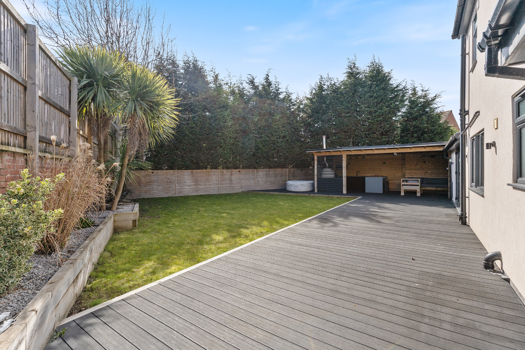 The property benefits from features such as a modern kitchen, multiple bathrooms, and a large garden. The outdoor kitchen and seating area are additional features that enhance the property’s appeal and potential value.