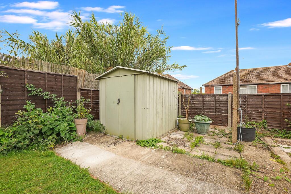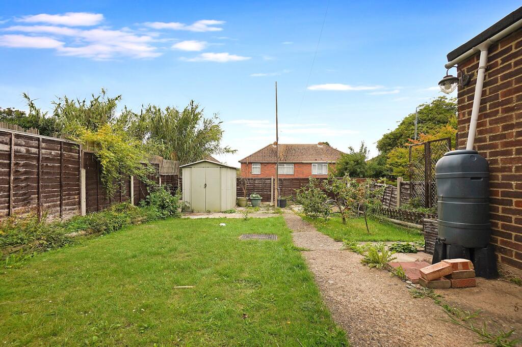 The property is a 4-bedroom terraced house located on The Fairway in Rochester, Kent. It is located within close proximity to schools and transportation. The interior photos show the property is in need of some renovation, with dated decor and fittings. The property has a garden with a shed. The property is listed at approximately £374 per sqft, which is lower than the average price per sqft in the area of £475.