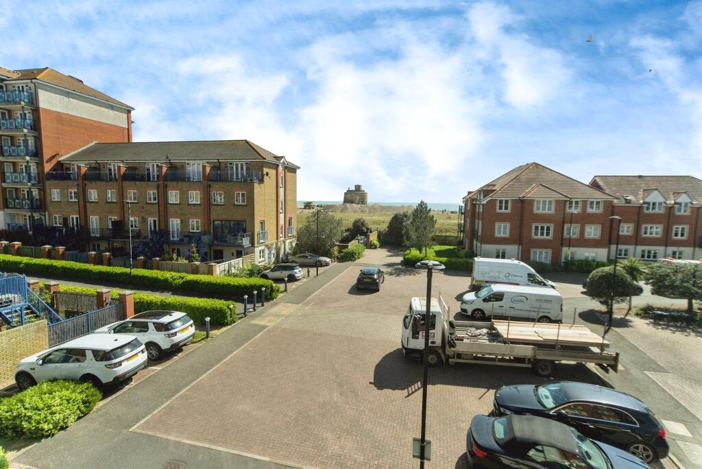 The property is a two bedroom, two bathroom apartment located in Dominica Court, Sovereign Harbour, Eastbourne. The apartment is 592.23 sqft and sits on a 710.42 sqft plot. The list price is £240,000. Based on the provided images, the apartment appears to be in good condition. The interior is modern and well-maintained, with updated fixtures and finishes. There is no visible evidence of damage or neglect. The communal areas also appear well-maintained. The apartment benefits from a balcony offering views. While not a large garden, it provides some outdoor space. The average price for properties in the area is £343,062, with an average price per sqft of £346. This property is listed at £240,000, significantly below the average price. Considering its good condition and desirable location, the price seems reasonable, potentially representing good value for money. However, the lack of sqft data for comparable properties makes a definitive statement difficult. The nearby properties show a range of prices, from £174,950 to £475,000, reflecting the variability in size and features within the complex. The proximity to schools and transport links further enhances the desirability of this location.