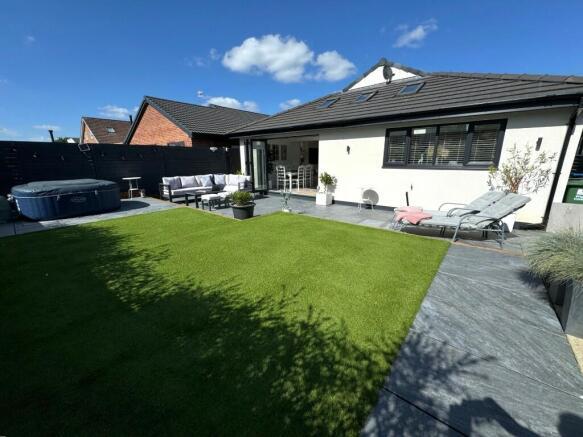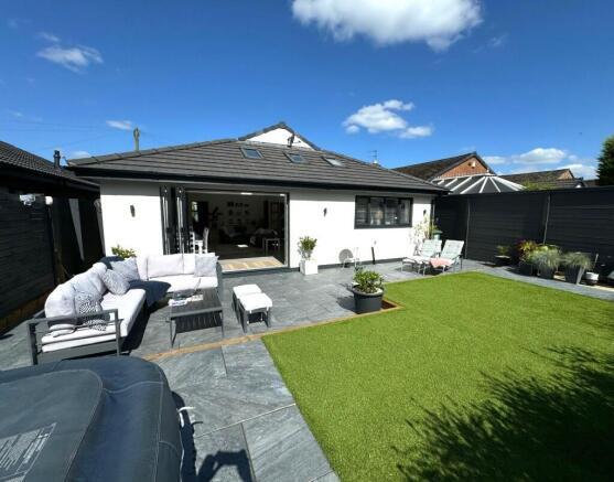 This property is a beautifully presented, extended detached bungalow situated in Lowton, Wigan. The location benefits from being close to highly-rated primary and secondary schools, as well as convenient access to local transportation links. The property itself has undergone a significant modernisation, boasting a contemporary open-plan kitchen and living area, a modern bathroom and en-suite, and three bedrooms. The extension has created a substantial living space and opens out to a well-maintained garden with a patio area and hot tub. The list price is higher than the average for the area, but this is likely justified by the extensive renovations, modern fixtures and fittings, and the desirable location. The property appears to be in excellent condition.