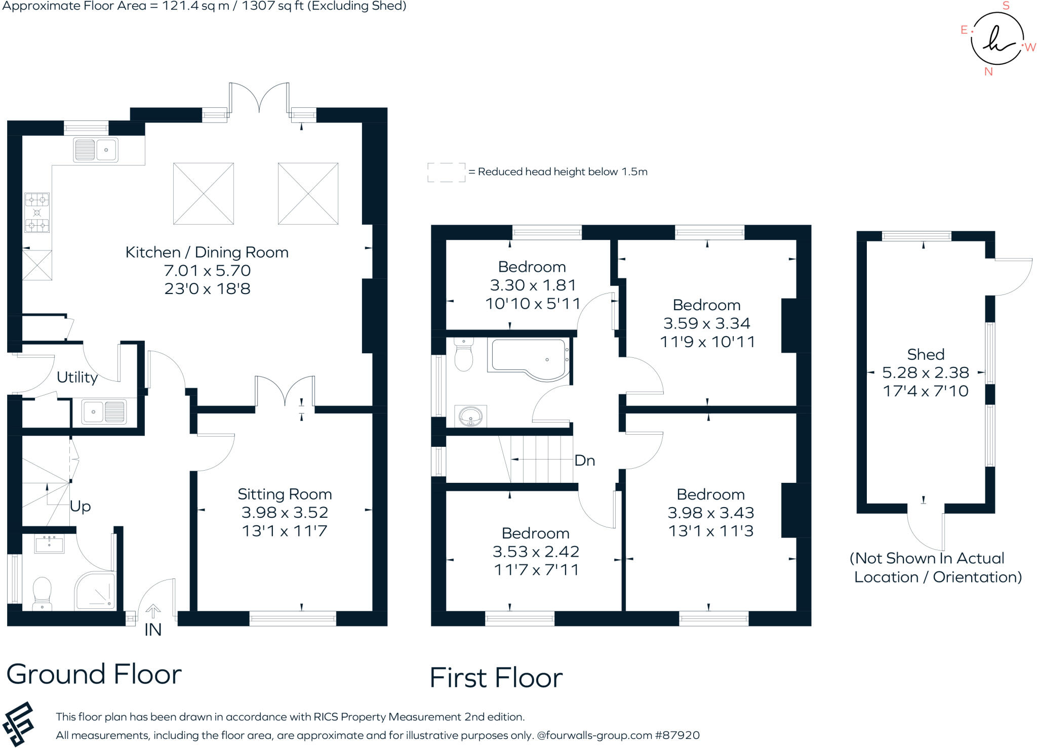 The property appears to have undergone a significant refurbishment or extension, resulting in a modern and well-presented interior. The images showcase a contemporary kitchen and bathrooms, with updated flooring and fixtures throughout. There is no visible evidence of significant wear and tear or the need for immediate repairs. The garden is relatively small, but well-maintained and includes a substantial shed. This suggests a good condition and a reasonable land score.