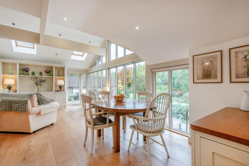 This beautifully extended property is a hidden gem, featuring five spacious bedrooms and three stylish bathrooms. The stunning, light-filled kitchen, dining, and family room overlooks landscaped gardens and woodland, while two generous reception rooms and a dedicated study offer versatile living ...
