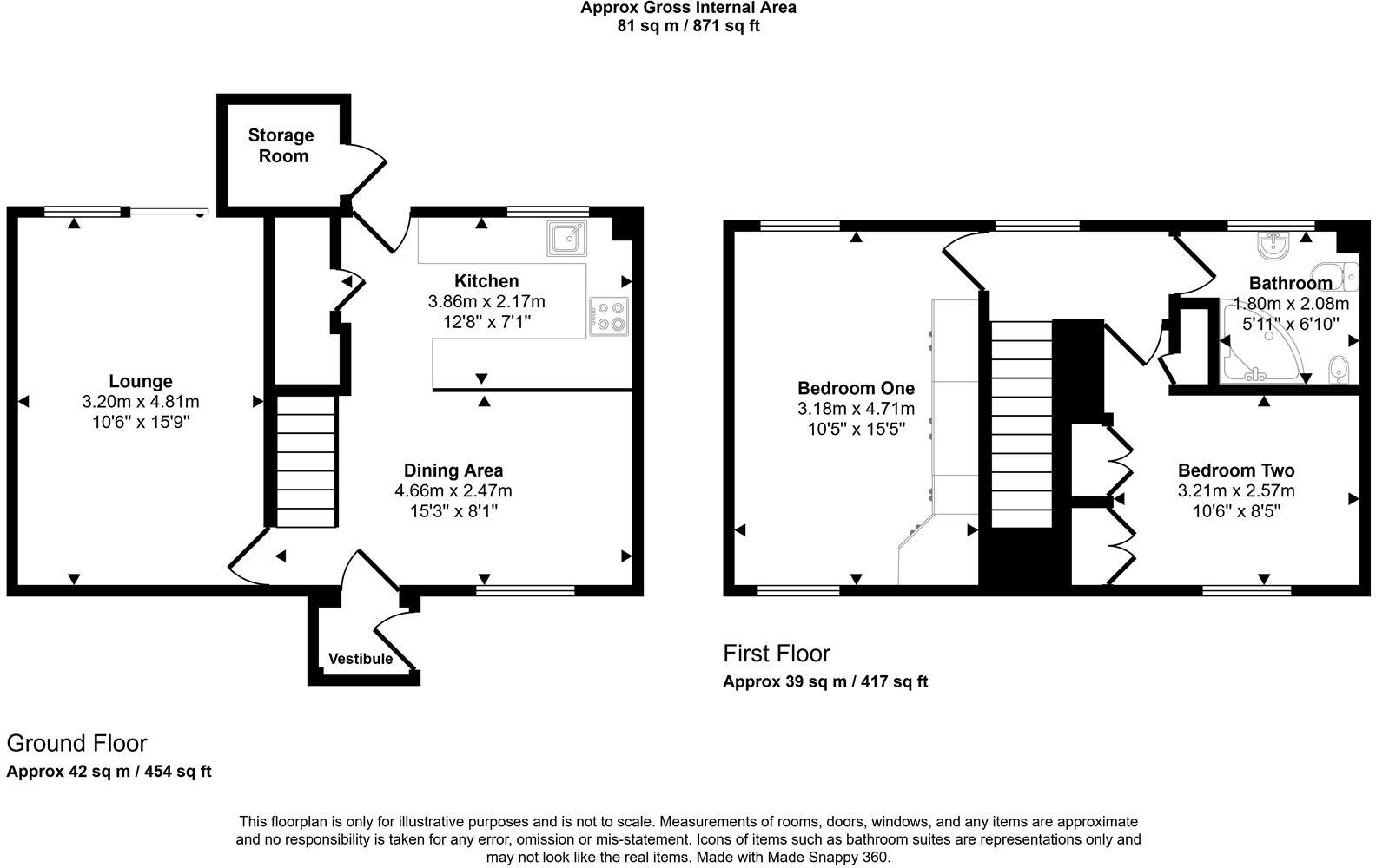 This is a two-bedroom terraced house in Carluke, South Lanarkshire. The property has a bathroom and a garden. The interior design is somewhat dated and may benefit from modernisation. Carluke train station is 2.67 KM away. The property is listed for £89,995, which seems reasonable given its size and location. The average price per square foot in the area is £509.