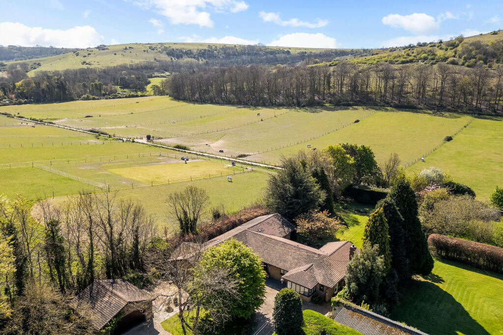 A beautifully presented 5 bedroom house with bright, spacious, very well-appointed single story accommodation, set in exceptional gardens and grounds with views to The South Downs.