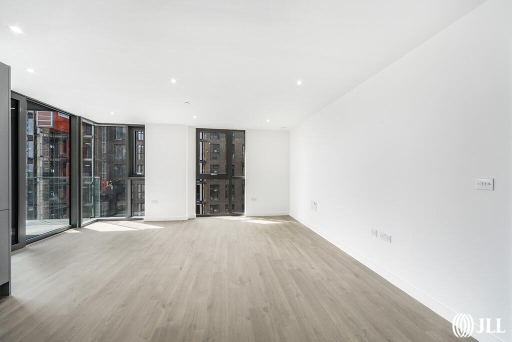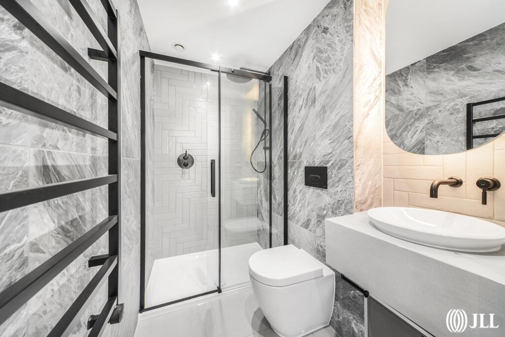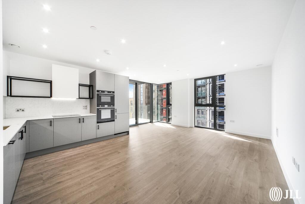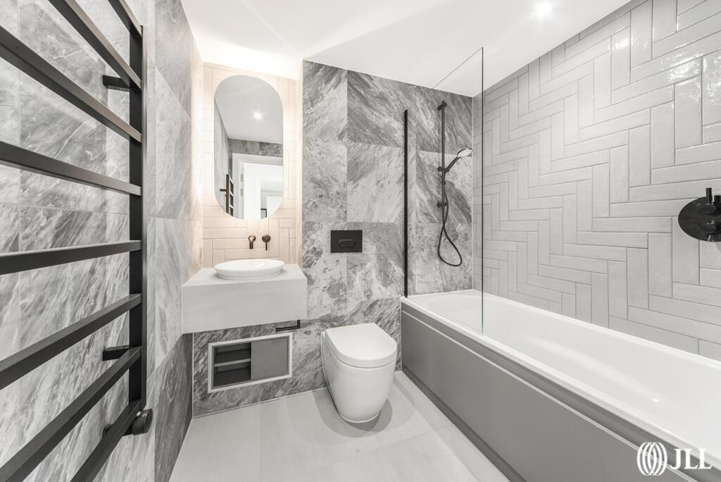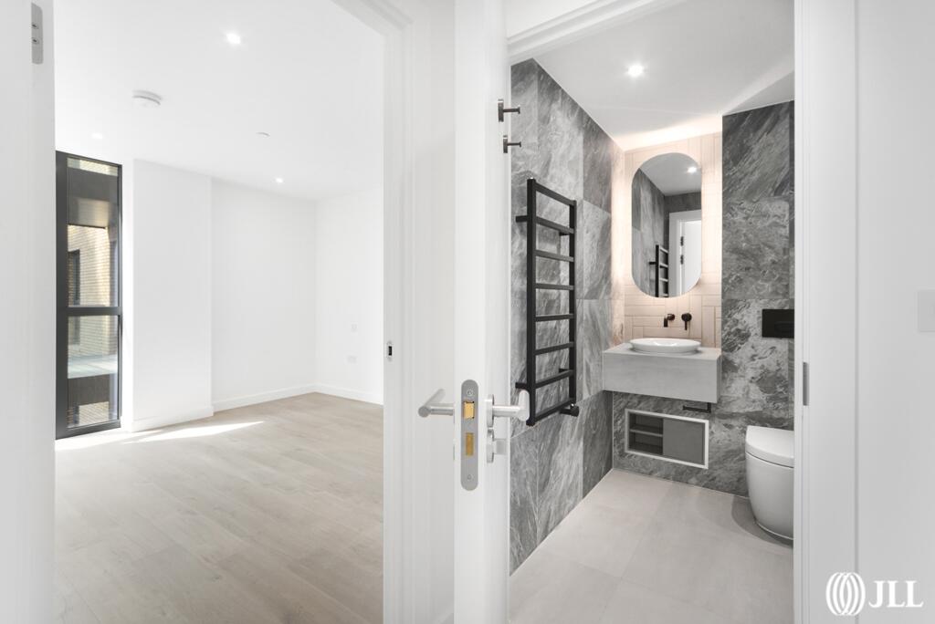 This two-bedroom, two-bathroom apartment at Willowbrook House, Coster Avenue, N4, is situated within the Woodberry Down development in Hackney, North London. The property is presented in what appears to be brand new or recently refurbished condition, exhibiting modern finishes and a clean, contemporary aesthetic. Images showcase a bright, spacious interior with a modern kitchen and bathrooms. The apartment benefits from access to communal amenities, including a gym and swimming pool, indicative of a high-specification development.