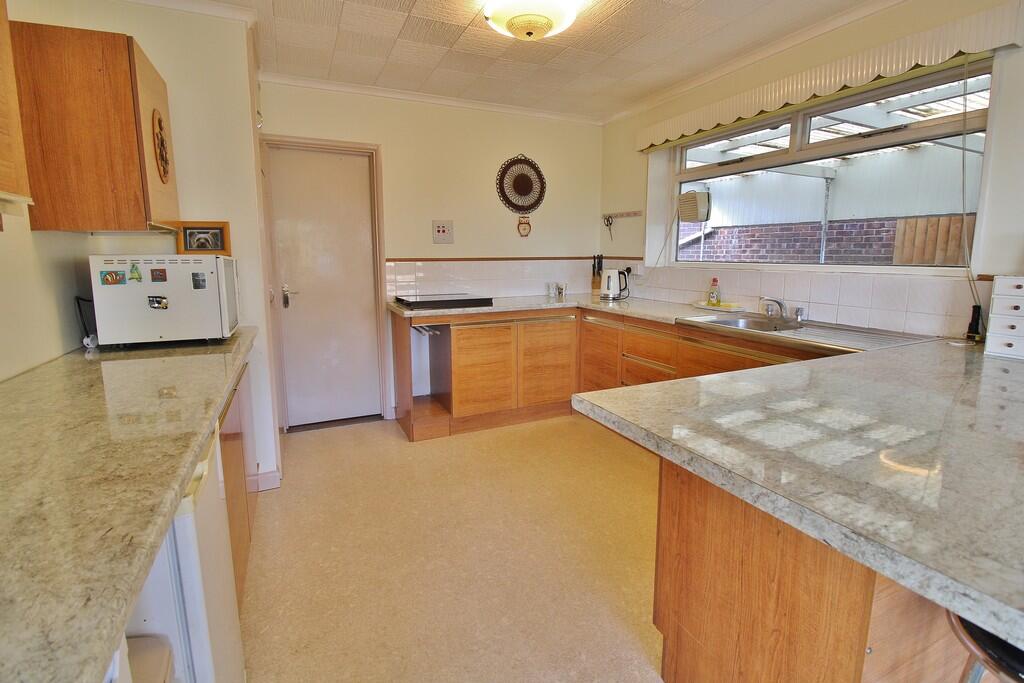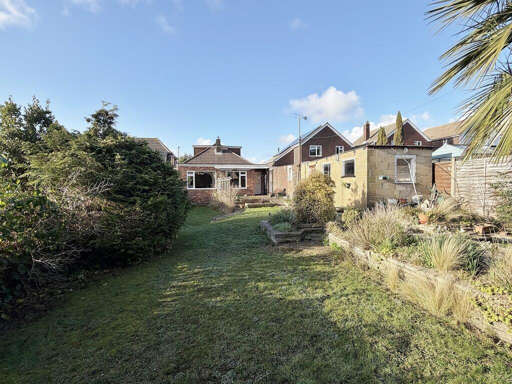 This is a detached bungalow located on Dore Avenue in Portchester, Fareham. The property features three bedrooms and one bathroom. While the location offers good access to transportation, schools, and local amenities, the property itself requires significant renovation. The interior is dated, and the condition of the bathroom, kitchen, carpets, and wallpaper suggests a need for modernization. The property benefits from a large garden with a patio and shed, providing ample outdoor space. Considering the condition and the local market, the list price of £425,000 may be negotiable.