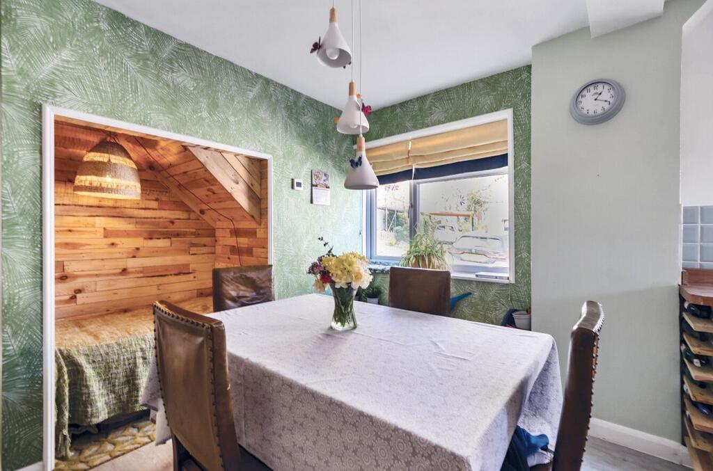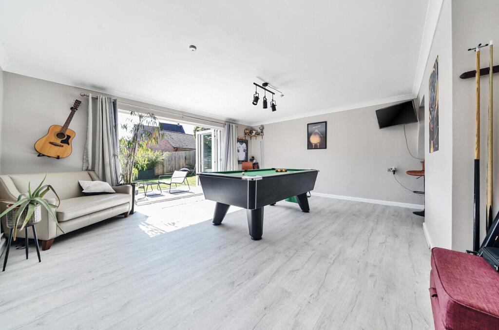 The property is a 4-bedroom, 2-bathroom detached house located in Enham Alamein, Andover, with a list price of £600,000. The property has 1,568.02 square feet of living space and benefits from a garden. The property appears to be in good condition, with a recently updated kitchen and bathrooms. The interior is well-maintained and presented. The exterior is also in good condition, with a well-maintained garden and a brick exterior. The location is in a desirable area, close to good schools and transportation links. Andover train station is approximately 3.63km away, offering convenient access to other parts of the country. Several well-regarded schools are within a reasonable distance, including Roman Way Primary School, Endeavour Primary School, and Knight’s Enham Junior School. Considering the property’s condition, location, and size, the list price of £600,000 appears to be slightly above average for the area. The average price for properties in the area is £333,800, and the average price per square foot is £291. However, the property’s superior condition, desirable location, and additional features such as the garden and potentially a garage (although plot size is listed as 0.00 sqft which is unusual) could justify a higher price. Nearby comparable properties support this, with prices ranging from £325,000 to £675,000. A more detailed analysis of comparable properties, including their square footage and features, would be needed to determine a more precise valuation. Based on the images provided, the property includes a pool table, suggesting a games room or recreational space. The property also appears to have a fireplace.