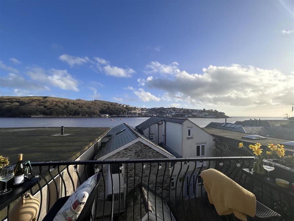 A STYLISH AND BEAUTIFULLY PRESENTED TWO BEDROOM FIRST FLOOR APARTMENT. FROM THE BALCONY AND LIVING AREA YOU CAN ENJOY STUNNING PANORAMIC VIEWS OVER THE ESTUARY, FROM PONT OVER TO POLRUAN, AND OUT TO SEA.