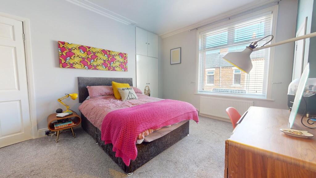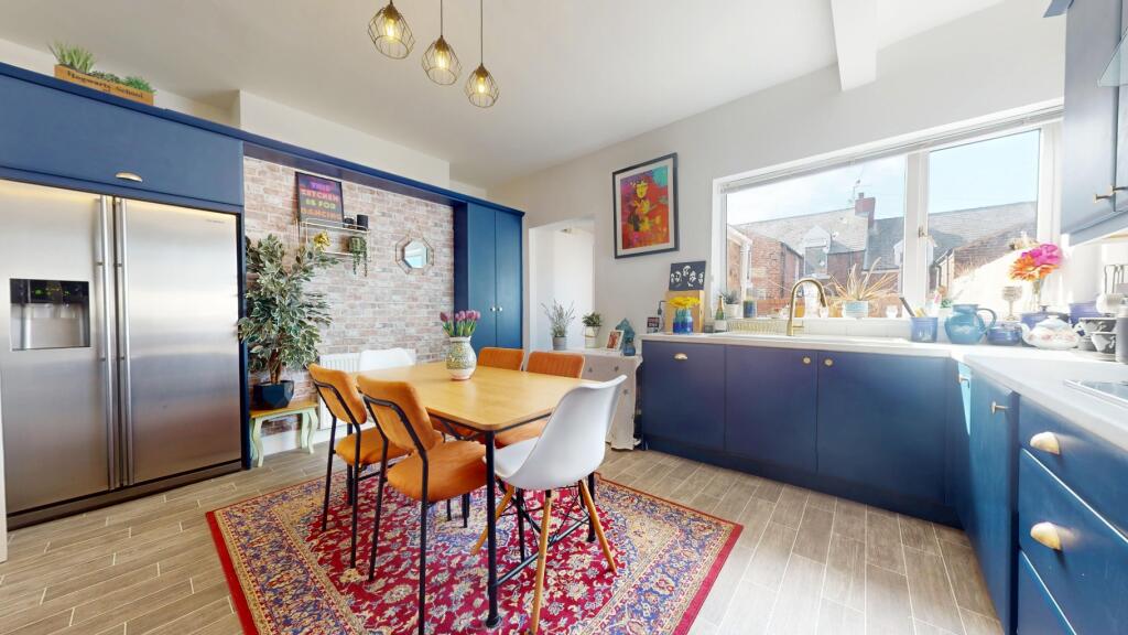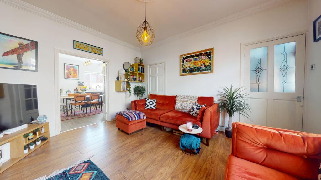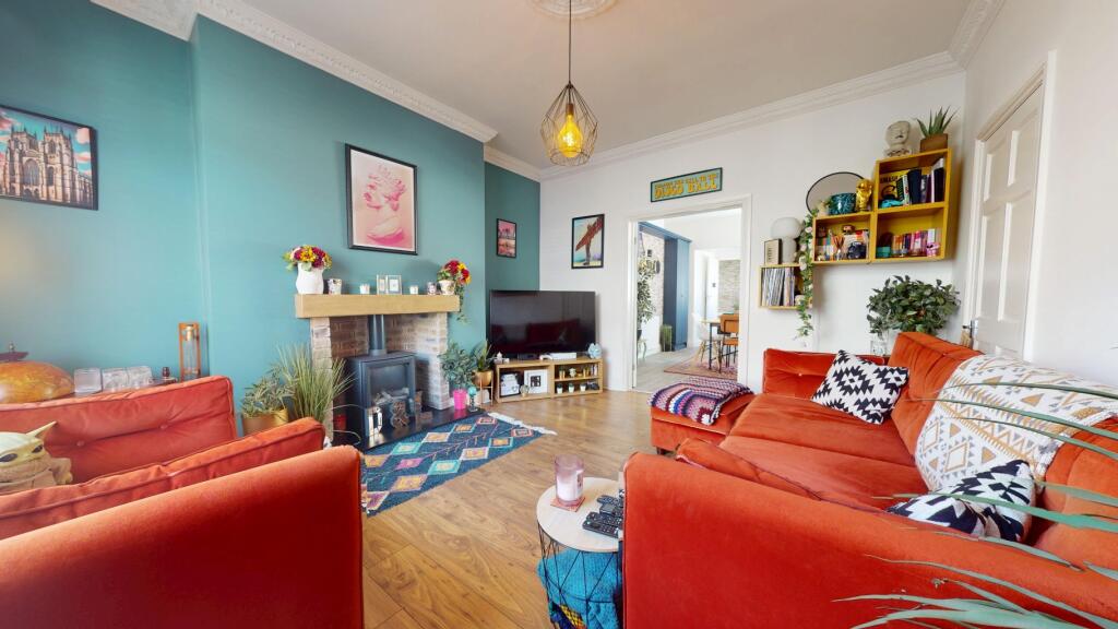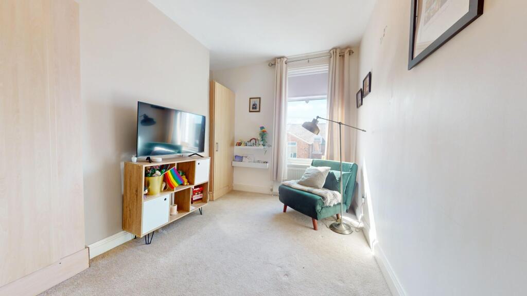 Spacious 3-bed terraced home over 3 floors with loft-converted primary bedroom. Features a gas log burner, large kitchen with integrated appliances, separate bath & shower, and rear yard with shed. Just off Mowbray, close to South Shields beach, metro, schools, shops, and restaurants.