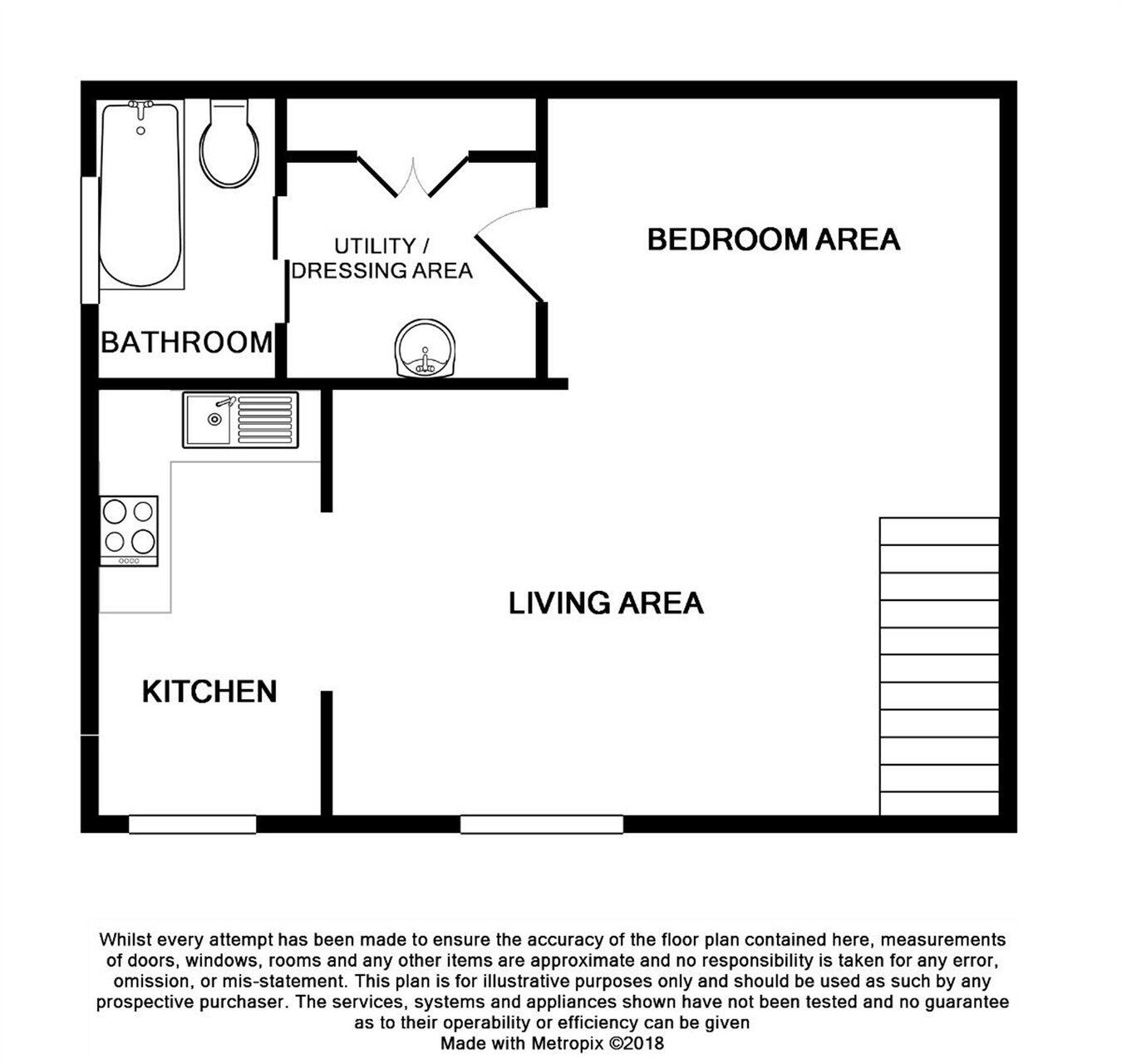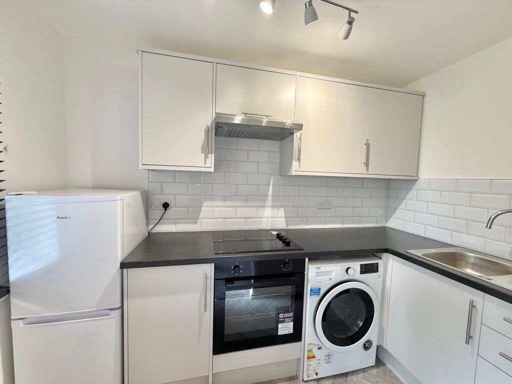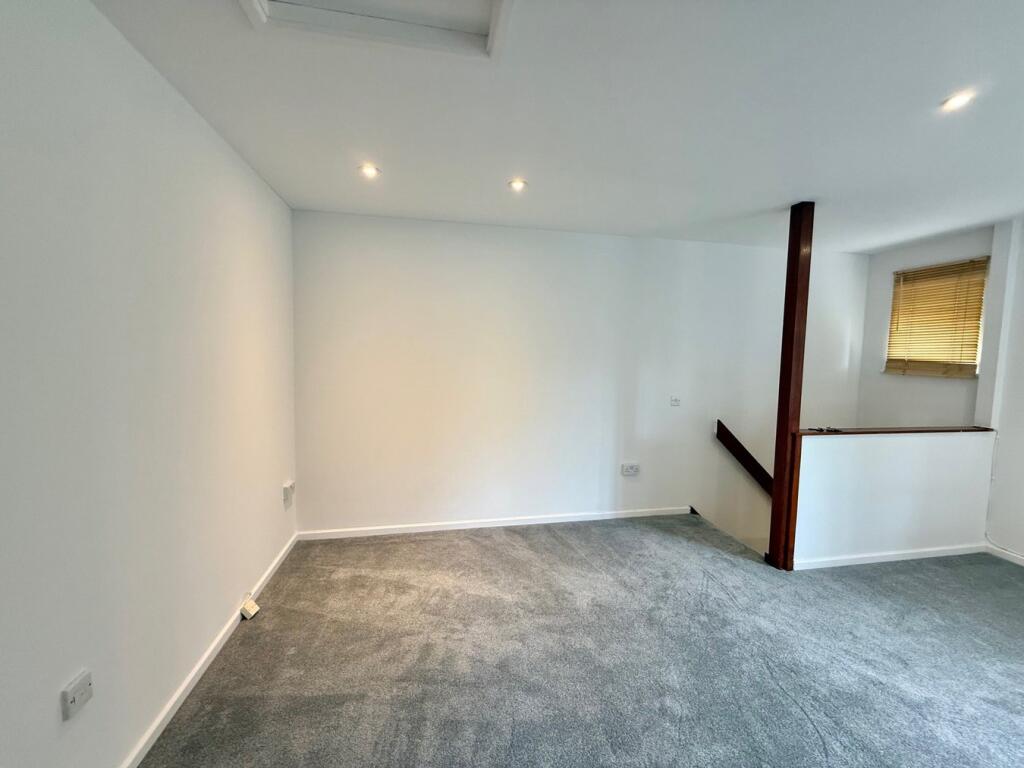 A first floor un-furnished studio apartment with large lounge/bedroom area. This lovely studio has been re-decorated throughout with newly fitted kitchen and carpets.