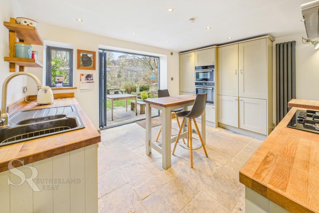 Stunning three-bedroom cottage in central Hayfield with scenic views, solid oak shaker kitchen with bi-fold doors, loft conversion with en suite, and a beautiful garden with summerhouse. Stylish interiors meet rural charm in this sought-after village location. EPC D.