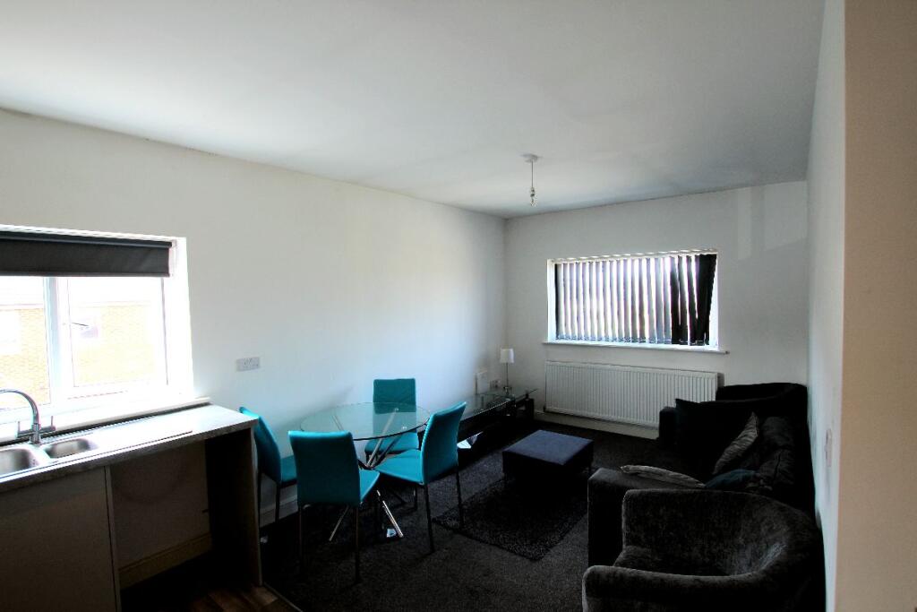 2 Bed Second Floor Flat in popular location. Lounge with Open Plan Kitchen. 2 bedrooms. Bathroom/W.C. uPVC Double-Glazing. Electric Heating. Parking Space. EPC: B