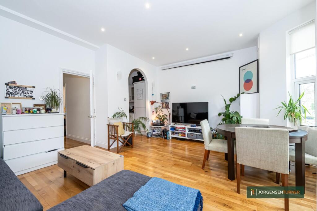 Nestled on this charming residential road in London, this exquisite one-bedroom first-floor conversion flat offers a delightful blend of Victorian elegance and modern sophistication. With its high ceilings and an abundance of natural light, the property creates a warm and inviting atmosphere.