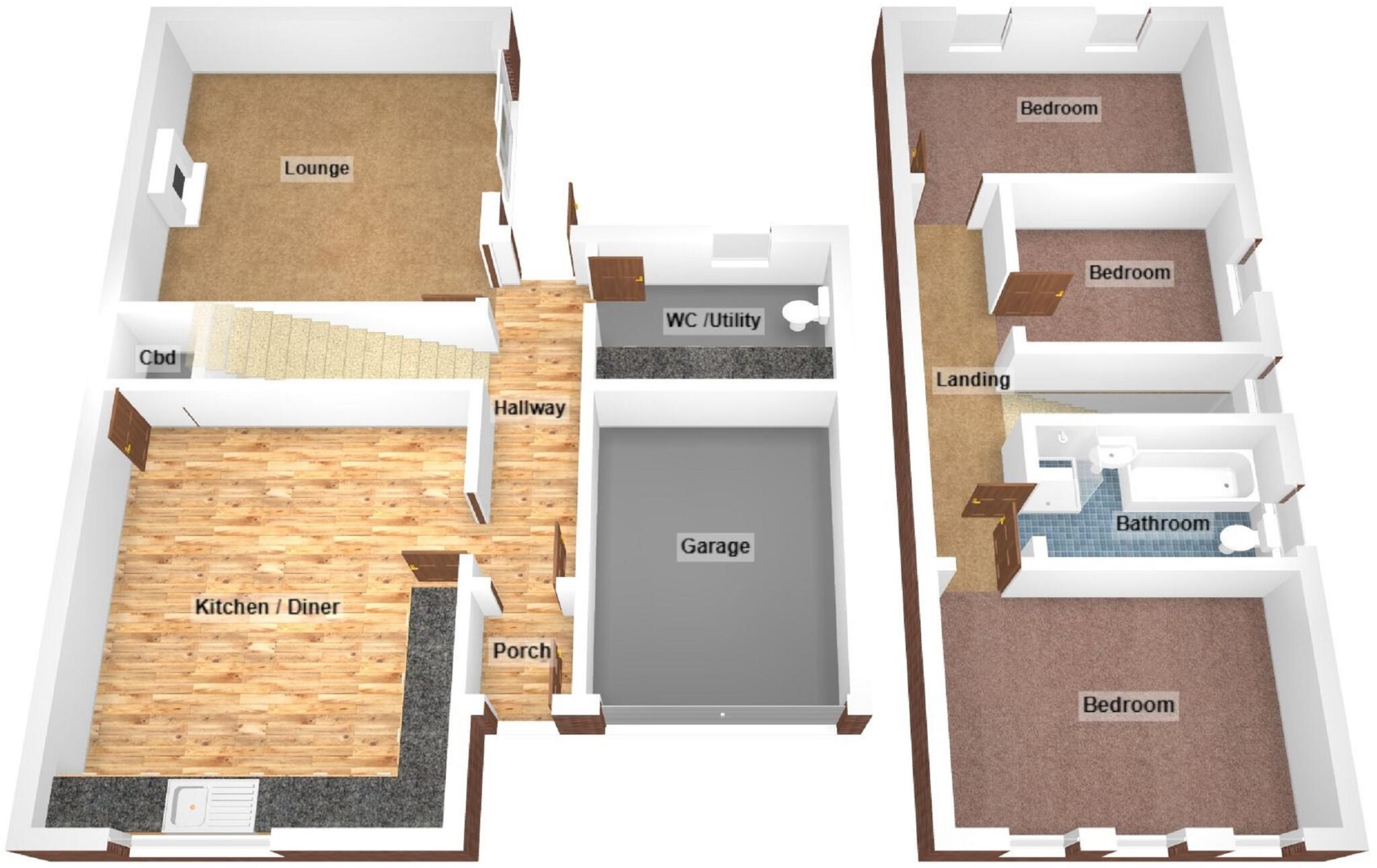 Three bedroom semi detached house comprising entrance hall, lounge, kitchen/diner, utility/w.c. first floor bathroom, enclosed rear garden, DRIVEWAY PARKING and GARAGE.