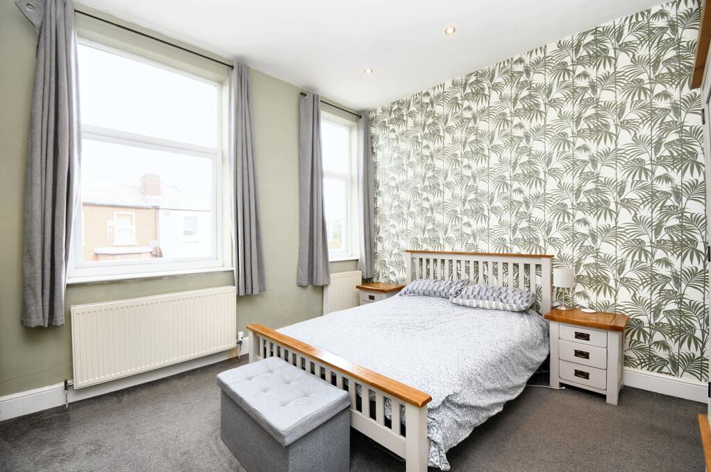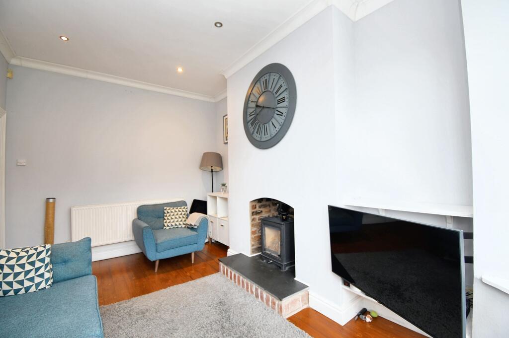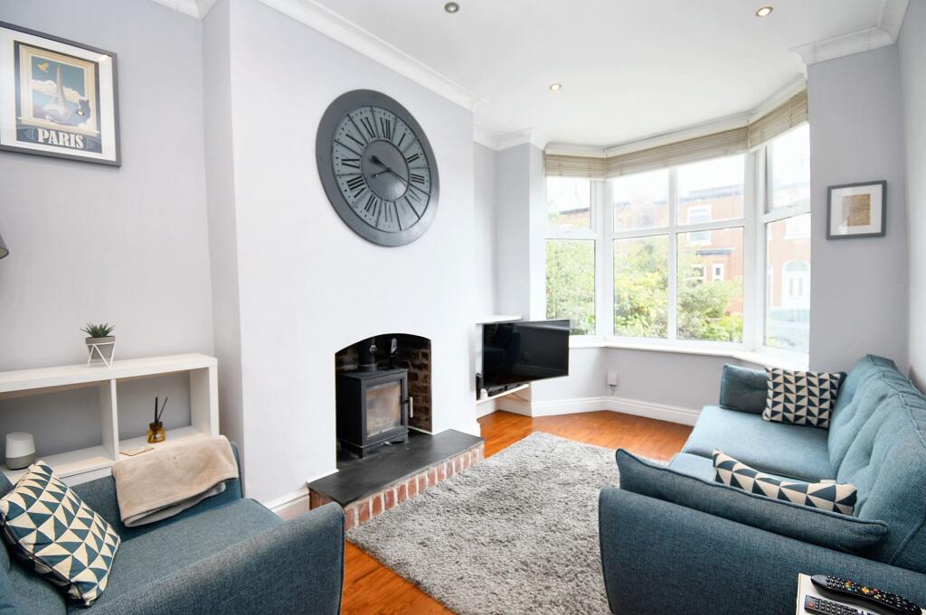 Beautiful four bed mid terrace over four floors. Bay fronted lounge, open plan kitchen/dining with brick fireplace. Generous bedrooms, white bathroom suite, versatile office/playroom. Cellars with utility space. Close to Patricroft Train Station. Period features with modern design.