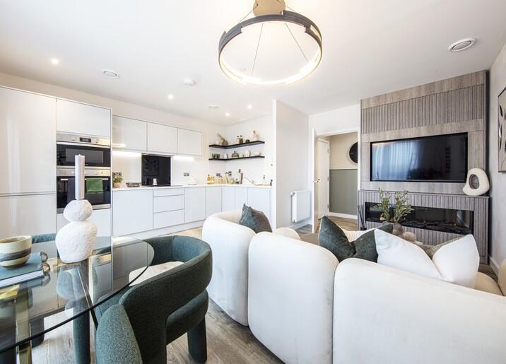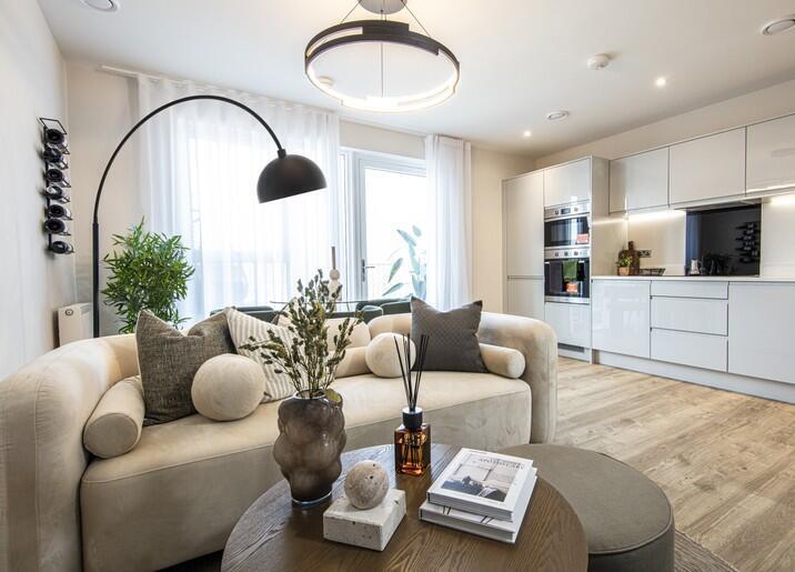 JUST RELEASED - Spacious 1 bed apartment with open plan kitchen/dining/living room, generous bedroom & access to private resident's podium garden. East facing balcony and only a 7 min walk from Elizabeth line.