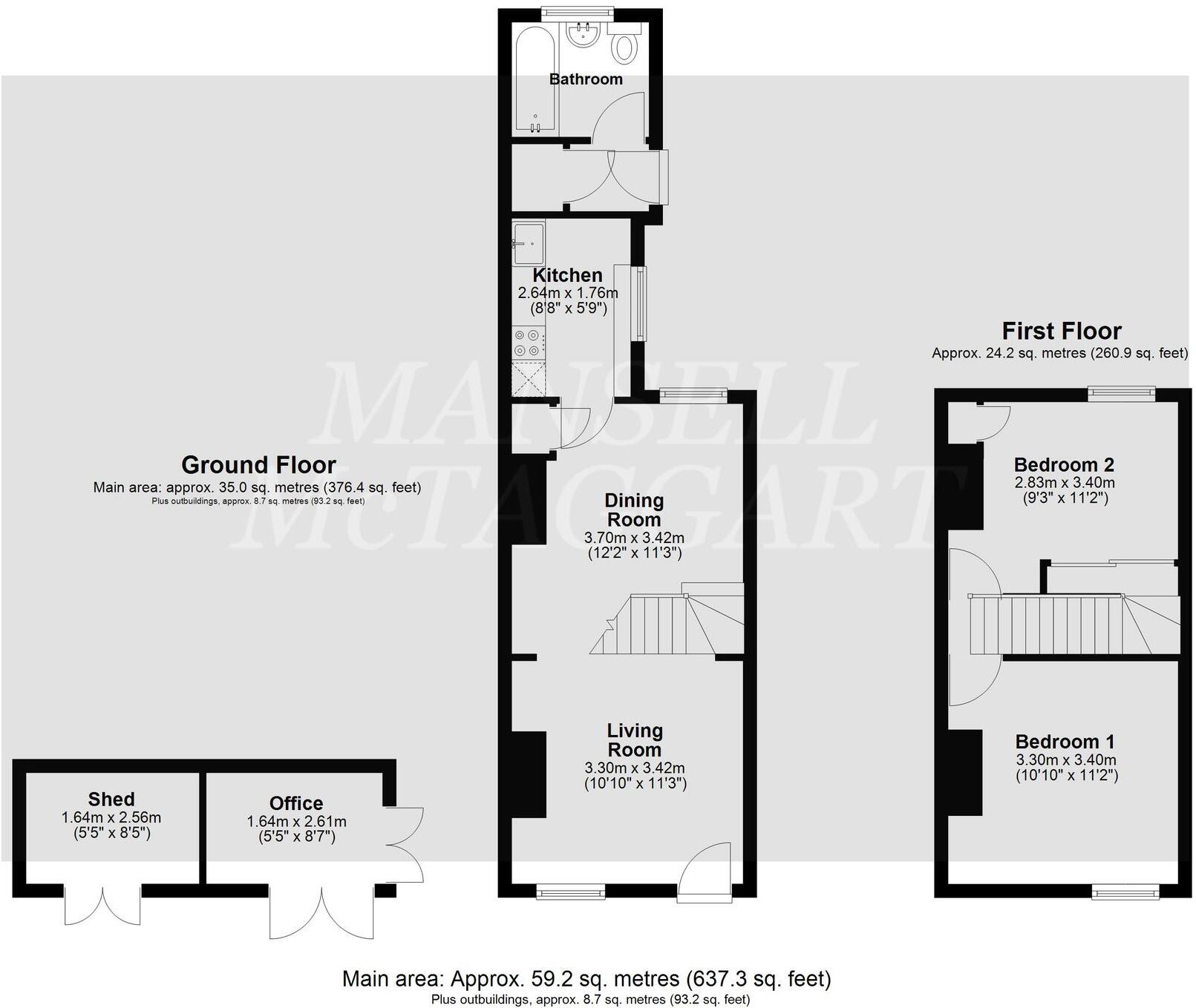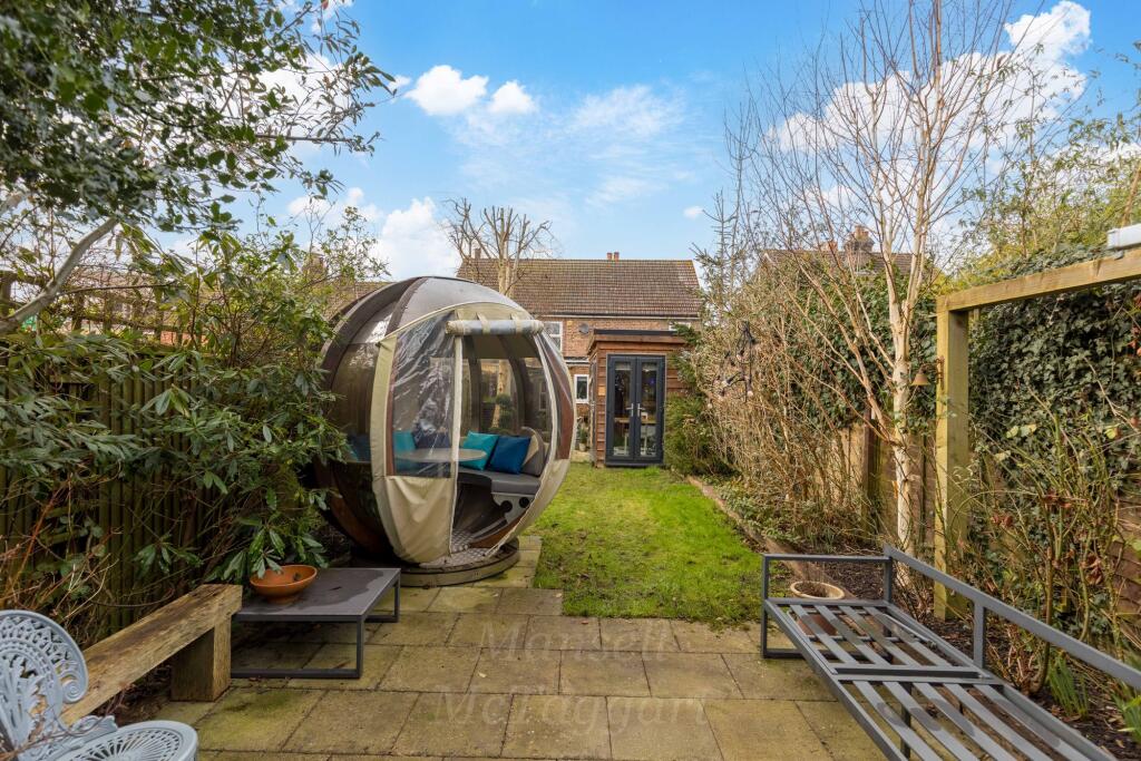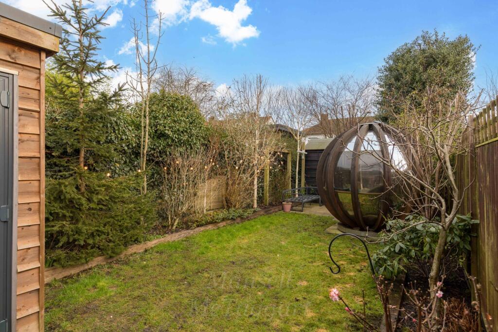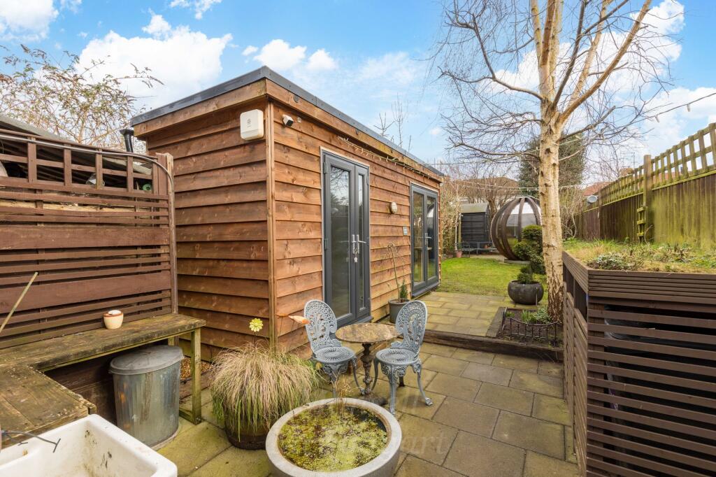 The property includes a garden, which is a desirable feature for many buyers. The garden is of a reasonable size and includes a garden room/office. The inclusion of a garden adds to the overall value and desirability of the property.
