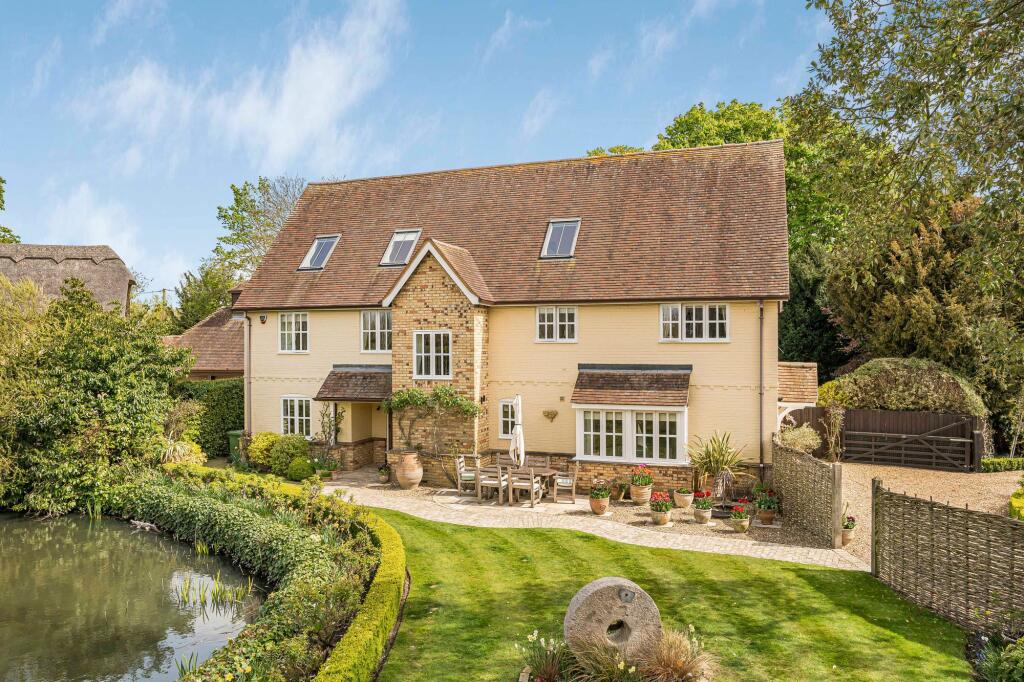 Land: The property includes extensive gardens and grounds, featuring a pond and mature landscaping. The size of the plot is not specified, but the images suggest a substantial amount of land, providing privacy and outdoor space.