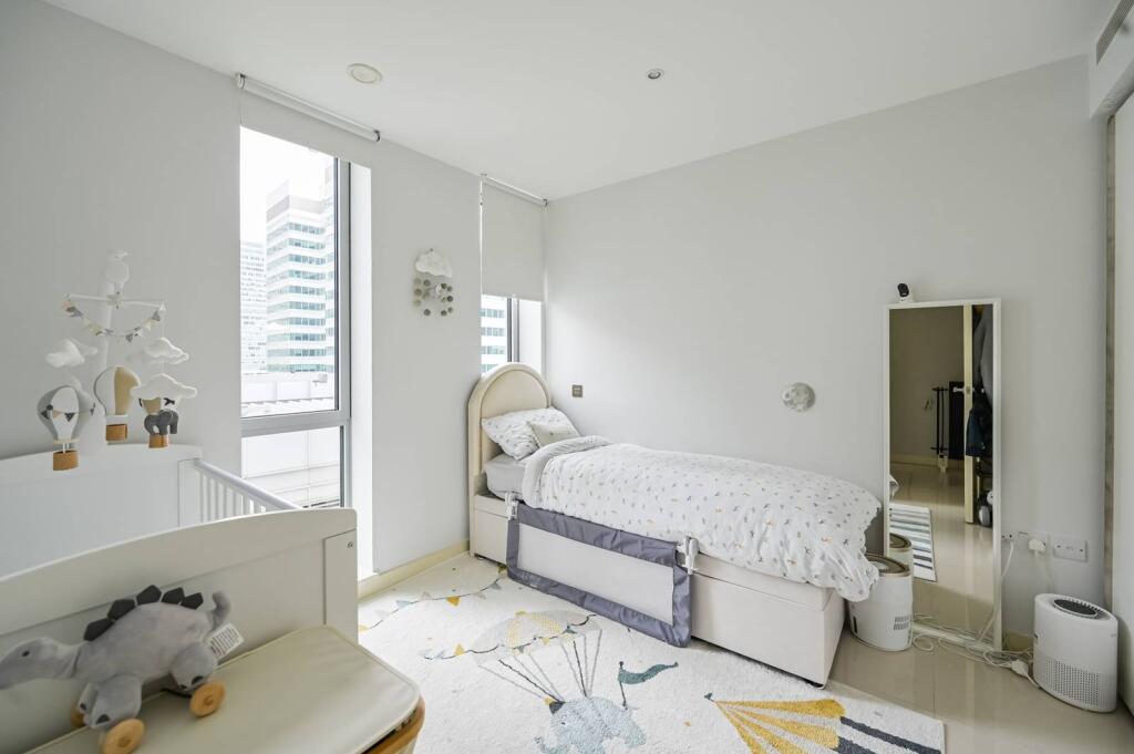 This property is a 2 bedroom, 2 bathroom flat located in the desirable Canary Wharf area of London. The apartment is modern and well-presented, as seen in the provided images. It benefits from floor-to-ceiling windows offering stunning views of the city. The location is excellent, with easy access to public transportation, shops, restaurants, and other amenities. Canary Wharf is a popular area known for its high-end properties and vibrant atmosphere. The price of £625,000 seems reasonable considering the average price per sqft in the area is £1102 and this property is 623.45 sqft. However, it is important to note that the average price for properties in the area is significantly higher (£865,272), suggesting that this property may be undervalued. The lack of plot size information makes it difficult to assess the land score.