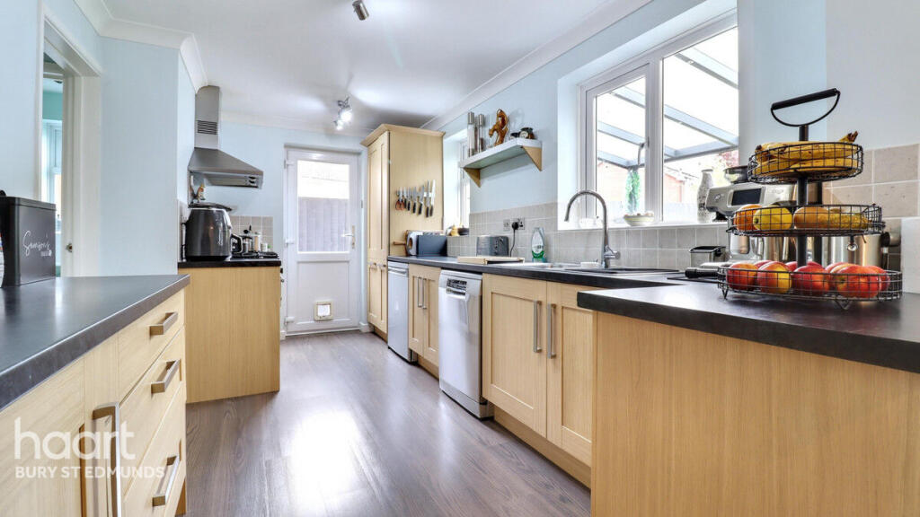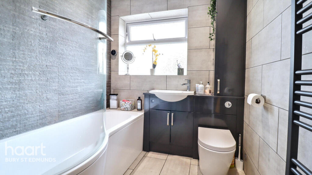 Ixworth is a desirable village location in West Suffolk, known for its peaceful atmosphere and proximity to Bury St Edmunds. The property is within easy reach of Ixworth Church of England Primary School and Set Ixworth School, both of which are highly regarded. The presence of a nearby train station in Thurston provides convenient access to other towns and cities. While the plot size is small, the garden is well-maintained and offers a private outdoor space. The property appears to be in good condition based on the provided images. The kitchen and bathrooms have been recently updated, and the overall presentation is clean and modern. There is no evidence of significant repairs or renovations being required. Considering the average price per square foot in the area is £278, and this property is listed at £395,000, the price seems reasonable, particularly given its location and condition. Nearby comparable properties support this assessment, with similar properties selling for prices within a similar range. The lack of sqft information for comparable properties makes a precise comparison difficult. The property benefits from a garage and a well-maintained garden with a patio area. These features are highly desirable and would likely appeal to many buyers.