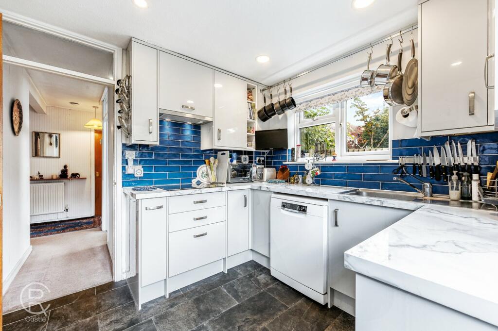 While the kitchen appears recently renovated, some areas of the property could benefit from modernisation and redecoration. The interior images show a somewhat dated aesthetic in several rooms, with carpets and wallpaper that may require updating to appeal to a broader range of buyers. The absence of detailed plot size information makes it difficult to fully assess the overall value proposition. The provided images showcase a tidy exterior and an adequately sized paved rear garden, though it is relatively compact.