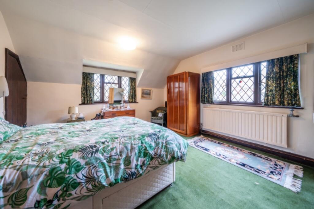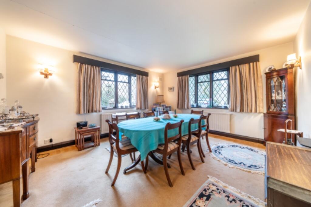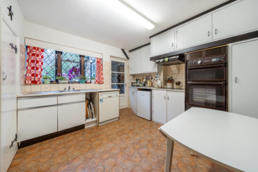 This three-bedroom detached house in Farnham Common, Buckinghamshire, presents a unique opportunity for prospective buyers. Located on Christmas Lane, the property enjoys a desirable setting with woodland to the rear and opposite, offering privacy and a tranquil atmosphere. The substantial plot size is a notable advantage, offering significant potential for expansion or landscaping. However, the property is in need of complete modernisation. The interior, as seen in the photographs, showcases dated features and requires a full refurbishment to meet modern standards. The kitchen and bathrooms are notably outdated, and the overall aesthetic of the interiors calls for a comprehensive update. The lack of specified square footage and the absence of similar properties with detailed comparable data in the immediate vicinity makes it challenging to definitively assess the property’s value. Nearby listed properties are in varying conditions and types, so direct comparisons are difficult. The nearby proximity of good schools and relative accessibility to transport links in the broader area enhances the property’s location appeal. However, buyers should budget for a substantial renovation project, adding to the overall purchase cost. A thorough structural survey and professional assessment of the refurbishment costs are highly recommended prior to purchasing this property.