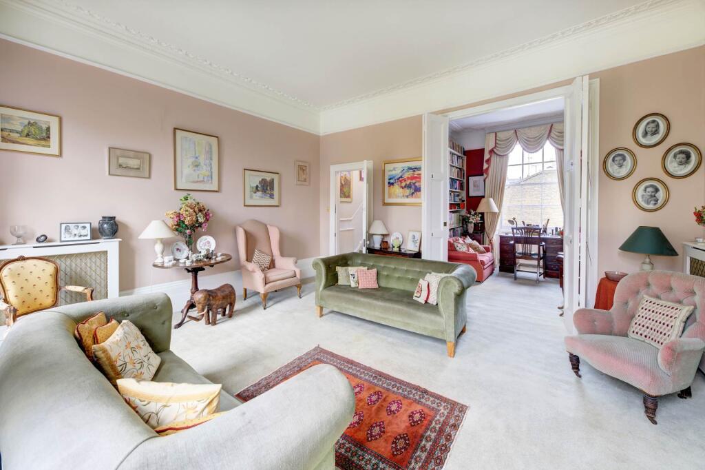 A much-loved Grade II listed end of terrace family home over five storeys situated on a delightful communal garden square.