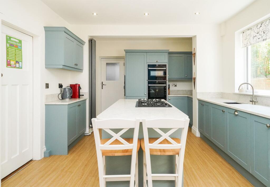 This is a three-bedroom semi-detached property on Bocking Lane, Sheffield. The house benefits from a modern kitchen, a well-maintained interior, and a garden. The property is located in a good area, with several schools nearby and good transport links. The price is slightly above average for the area, but comparable to similar properties in the vicinity. The property also benefits from off street parking and a double garage.