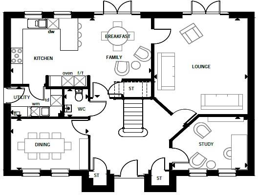IMPRESSIVE 5 bedroom house with central stair case and two French doors to garden. You'll also find a spacious open plan kitchen and lounge. Upstairs are 5 double bedrooms including main bedroom with en suite. Plot 82 | The Glidewell | Chiltern Grange | David Wilson Homes. Full Description: Thi...