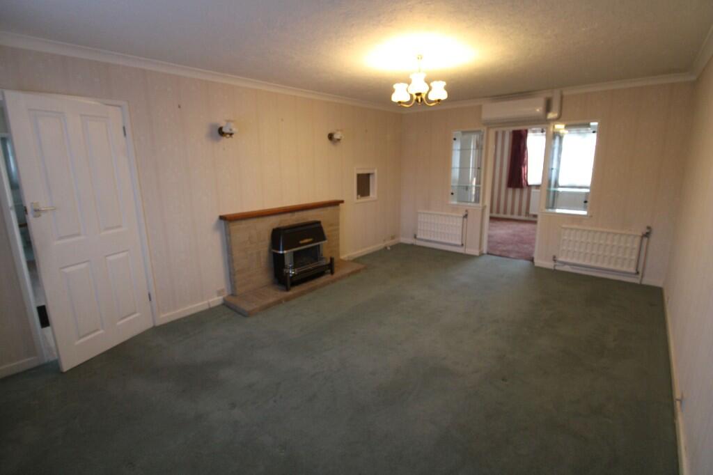 An opportunity to purchase a two-bedroom bungalow in a large plot, with lounge, dining room, kitchen/ breakfast room, family bathroom, en-suite shower room, utility room, gas radiator central heating, double glazed windows, double garage and large rear garden.