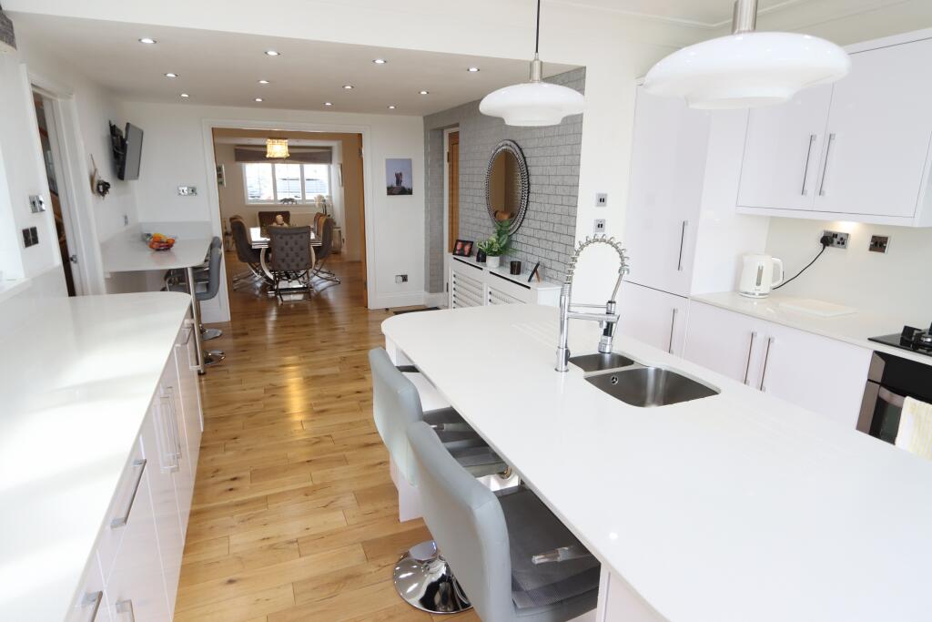 LUXURY FOUR BEDROOMED DETACHED FAMILY HOME located in a first class position backing on The Links with splendid open multi aspect views. This beautiful family home is in impeccable condition and has been thoughtfully updated, modernised, extended & reconfigured throughout.