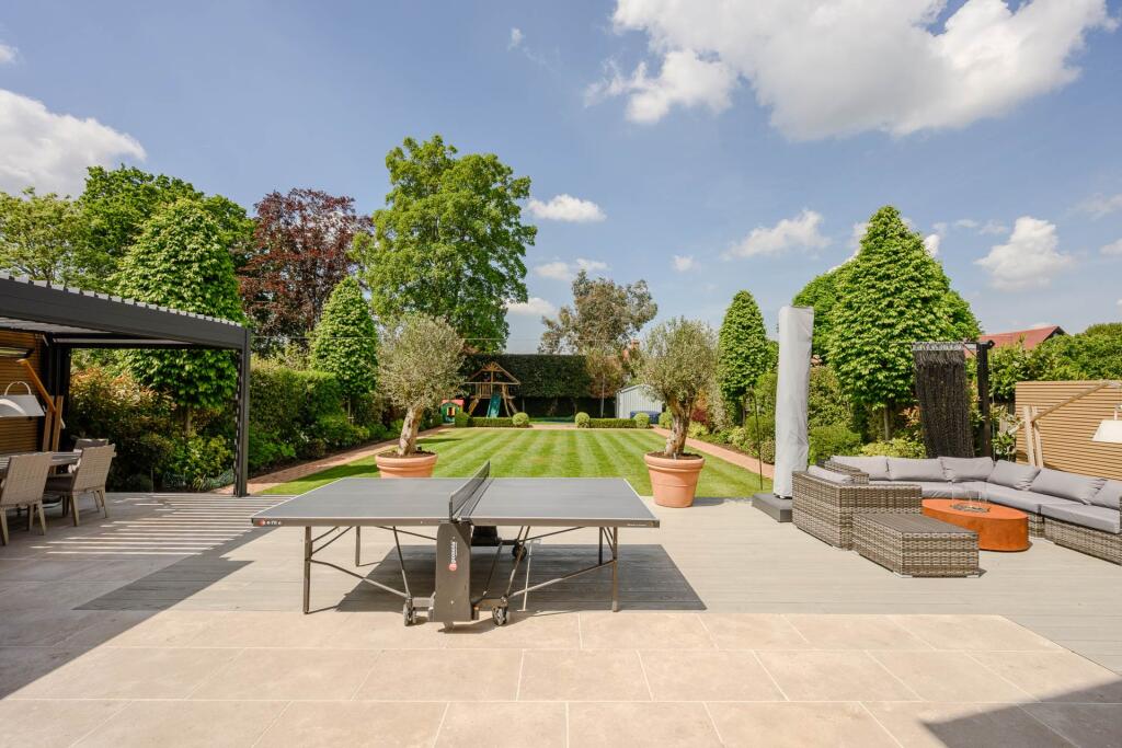 The property boasts a substantial garden, which is a significant asset in this market. The outdoor space is well-maintained and includes a patio, lawn, and various features such as an outdoor kitchen and pergola. The size and features of the garden contribute positively to the property’s overall value.