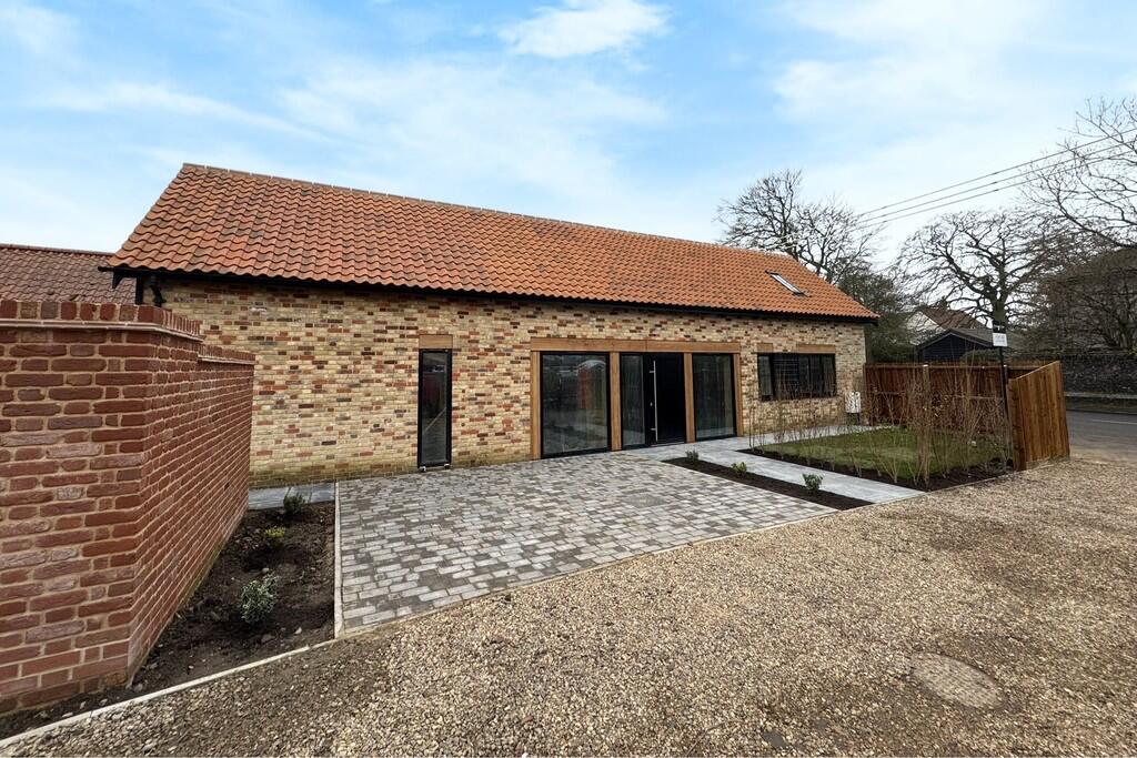 This property is a barn conversion located in Norton, Suffolk. The exterior presents a modern and attractive conversion, using high-quality materials such as the brickwork and tiling. The images show a paved patio and a newly established garden. The interior, however, shows an unfinished state, with exposed walls, cabling, and materials indicating the property is still under construction or in its final stages of fitting out. This means that while the exterior offers a pleasing aesthetic, the buyer should be aware that the property will require completion. The location is convenient for families due to the proximity of well-rated primary schools. The location in Norton provides a balance of rural living with access to transport links. The lack of explicit square footage for nearby properties and for the property itself limits a completely precise comparative market analysis. The provided price point sits within a reasonable range for similar properties in the area but more precise details about the total living area, land size and specifications are needed for a conclusive assessment of its value. Potential buyers should factor in the costs of completing the interior works and the overall timeframe before the property is habitable.