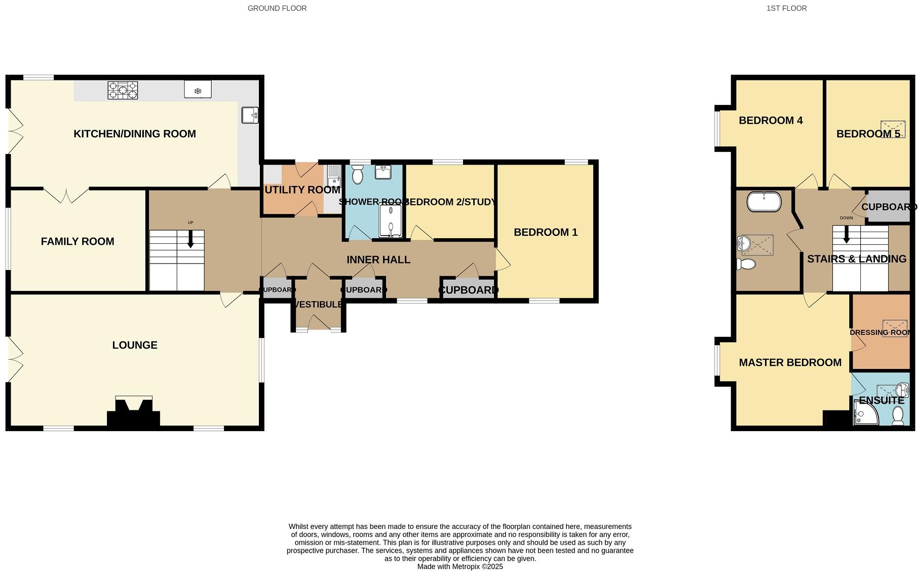 This superbly presented five-bedroom detached property offers spacious and flexible family living across two floors.