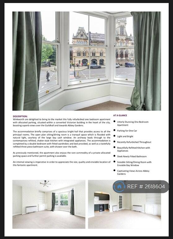 TASTEFULLY REFURBISHED ONE BEDROOM APARTMENT WITH PARKING FOR ONE WITHIN CENTRAL LOCATIONFully refurbished one bedroom apartment with allocated parking, situated within a converted Victorian build... ** Property Reference: 2618604 **