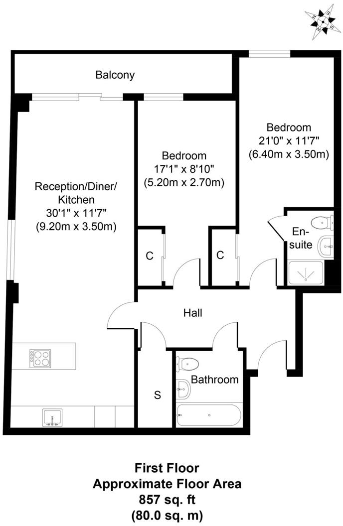 This contemporary two-bedroom apartment in the Chi Building set on the third floor, this spacious property of approximately 810 square feet boasts a large open-plan kitchen and living area, two generously sized double bedrooms with built-in storage, a family bathroom, an en-suite, and a private b...