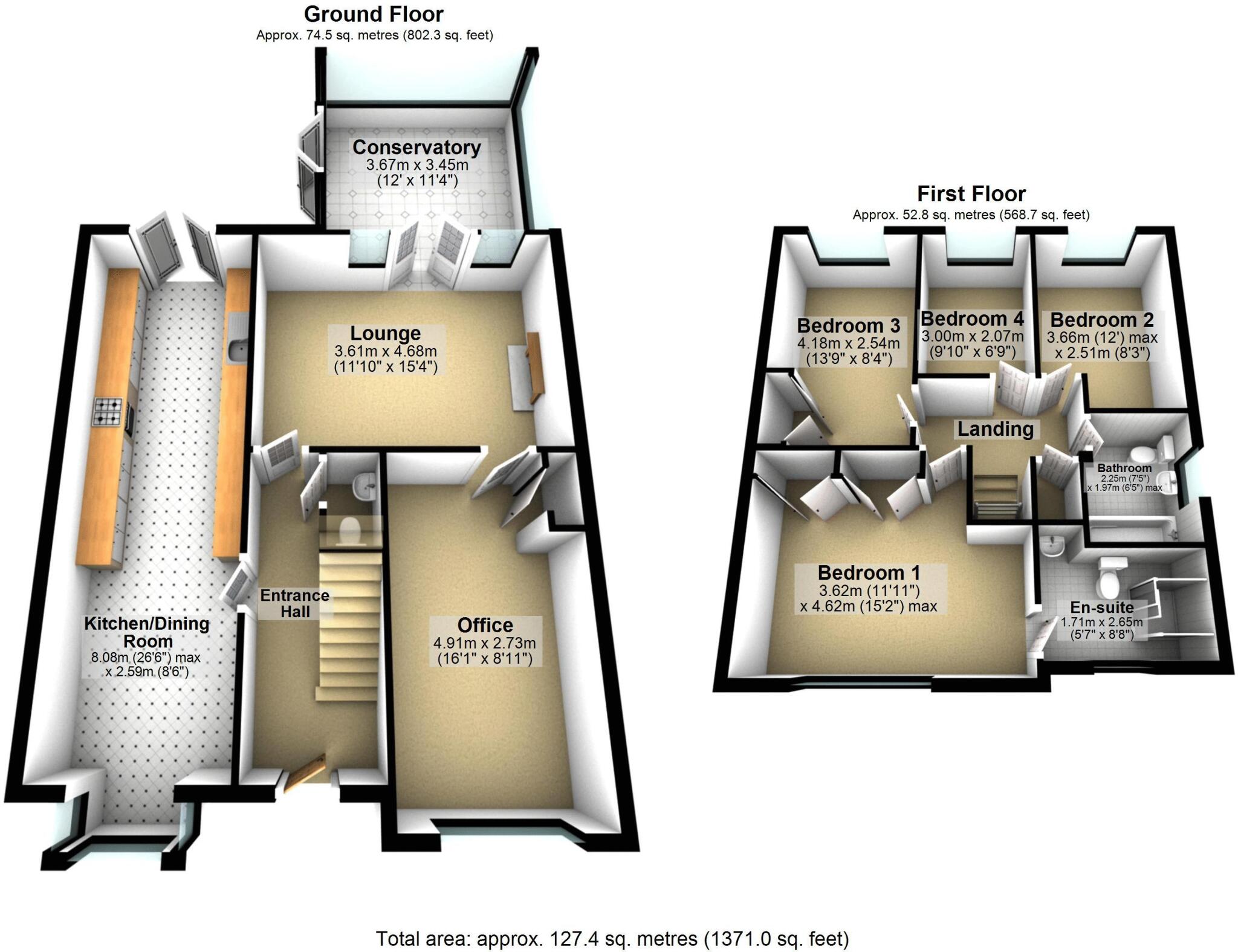 The property is a 4-bedroom, 3-bathroom detached house located in a convenient location with good local schools and transport links. The property is in excellent condition with modern fixtures and fittings, and benefits from a sizeable rear garden and conservatory. The asking price is likely competitive within the current market, although a precise comparison is difficult without sqft data.