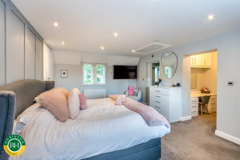 This five-bedroom, three-bathroom property in High Melton, Doncaster, presents as a well-maintained, modern home. The interior boasts a stylish, contemporary design, with high-quality finishes and fixtures evident in the kitchen, bathrooms, and bedrooms. The expansive living spaces and ample storage space add to the home’s appeal. The property’s exterior shows a well-maintained garden and landscaping. The inclusion of a hot tub is an attractive feature. Proximity to Doncaster offers easy access to a wider range of amenities and transportation links, although the direct proximity of local shops and other amenities in the village itself is unclear. The price of £750,000 is potentially high given the limited data available on the average price per square foot in the area. Overall, the property offers a desirable lifestyle in a semi-rural setting with a modern and well-presented interior, however, buyers should undertake independent research to satisfy themselves on the market value given that complete property and plot size information has not been made available.