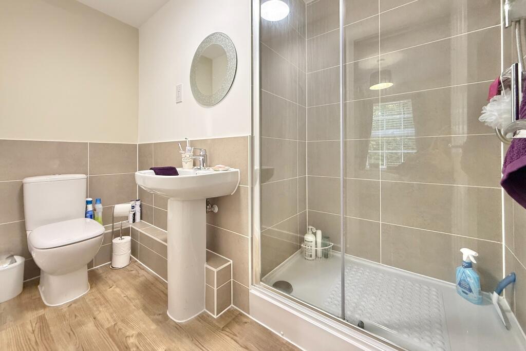 This is a two-bedroom apartment located on Montefiore Drive, Sarisbury Green. The property is in good condition, with modern fixtures and fittings. It benefits from nearby schools and transportation links. The apartment has access to communal garden space. The price seems reasonable for the area and the condition of the property.