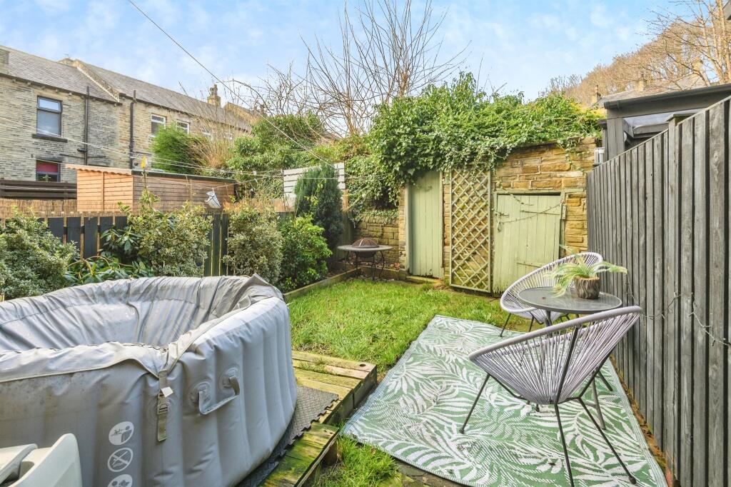 This property is a 2 bedroom, 1 bathroom terraced house located on Elmwood Street, Brighouse, West Yorkshire. The property benefits from a relatively small plot size of 1000 sqft, but this does include a garden area with a hot tub. The property is presented in good condition and has recently been modernised. The location is good, with nearby schools and transport links. However, the average house price in the area is significantly higher than the list price of this property, suggesting it may be underpriced.