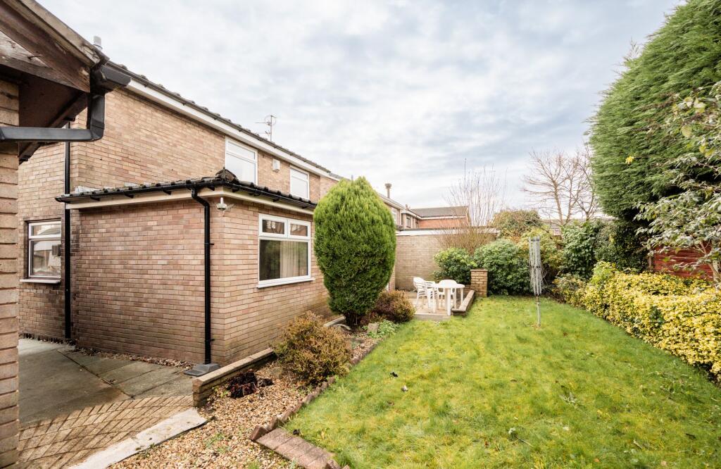 Detached three-bedroom home in quiet Newburgh cul-de-sac. Spacious rooms, garage, private garden, scope to modernise. Close to shops, schools, and transport. Sought-after location.