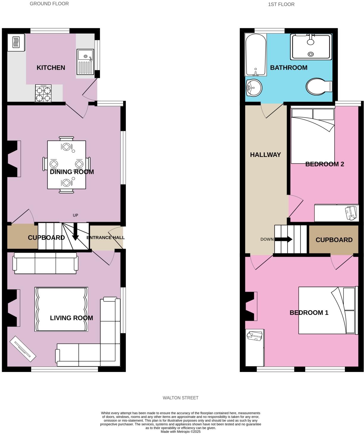 This is a two-bedroom semi-detached property located on Walton Street, Long Eaton. The house is in generally good condition, with a modern bathroom and kitchen. It benefits from a small rear garden. The property is located close to local amenities, schools, and transportation links. The asking price of £160,000 represents good value for money, given that the price per square foot is significantly lower than the local average. The property would be ideal for a small family or first-time buyer. While the property is in good order, some may wish to make some minor cosmetic improvements.