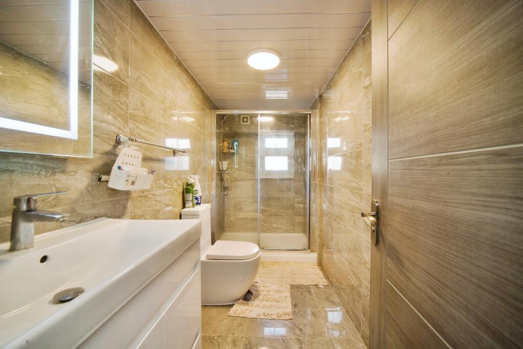 Based on the provided images, the property appears to be in generally good condition. The interior shows a recently updated kitchen and bathroom. There is some evidence of wear and tear in some areas, but nothing that would suggest significant repair or renovation is immediately necessary. The property also benefits from a paved rear garden, providing additional outdoor space.