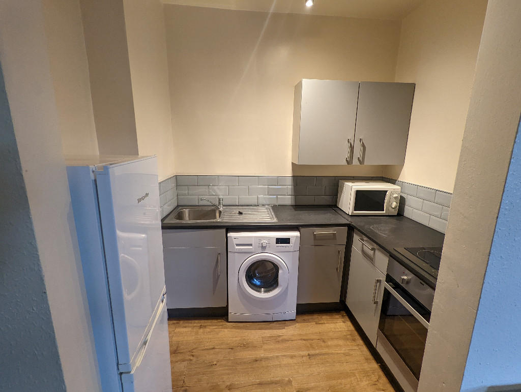 One bedroom 1st floor flat in an excellent location, less than 10 minutes from both Fallowfield & Withington. Featuring large lounge with adjoining kitchen, double bedroom and bathroom with over bath shower. Great public transport links close to Mauldeth Road Station & buses