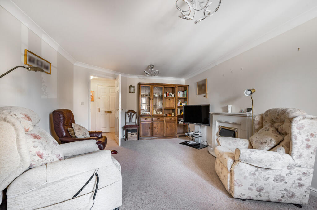 One bedroom, first floor retirement apartment with communal facilities and parking. The property has an entrance hall with built-in storage leading to a spacious sitting room with a fireplace and double doors to the kitchen. Double bedroom with a range of fitted wardrobes an...